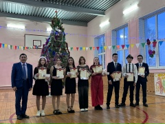 Слово директораПод конец праздника директор школы сердечно поздравил всех присутствующих с успешно завершившейся четвертью, выразил огромную благодарность учителям за их труд и родителям за активное участие в воспитании детей. Фатих Фатхрахманович вручил Почетные грамоты победителям школьного этапа ВСОШ, грамоты и премии победителям и призерам муниципального этапа. Как никогда прежде наша школа завоевала в этом учебном году 21 призовое место на МЭ ВСОШ! Он искренне пожелал всем здоровья, счастья и благополучия в новом году.
