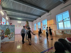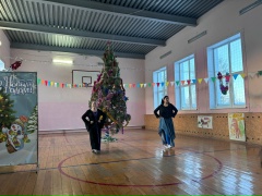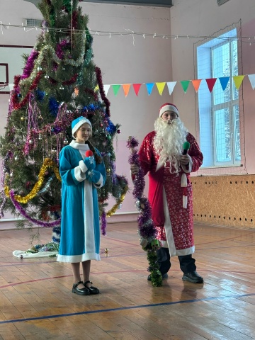 Специально приглашённые Дед Мороз (Кирилл) и Снегурочка (Ангелина) вместе с учащимися устроили весёлые зимние забавы, чтобы никто не замёрз и настроение было праздничным.